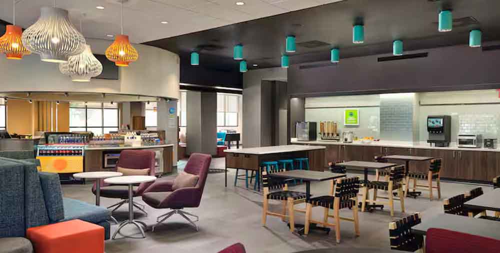 Tru fun downtown near Convention Center. We’re off I-70, a block from Colts games at Lucas Oil Stadium and 0.5 mile from Eli Lilly. The Indiana Convention Center, Pacers basketball at Gainbridge Fieldhouse, and Circle Centre shops are all a 10-minute walk. Enjoy our free breakfast, 24-hour fitness center, and our 24/7 market. Our lobby has semi-private alcoves for work, plus board games.